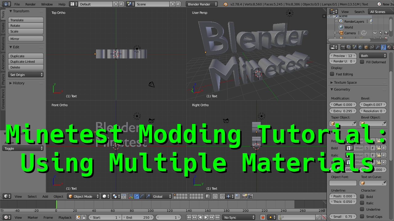 In this video we'll be looking at how to use multiple materials on a mesh in Blender, and then use those materials in Minetest, to make texture management easier.