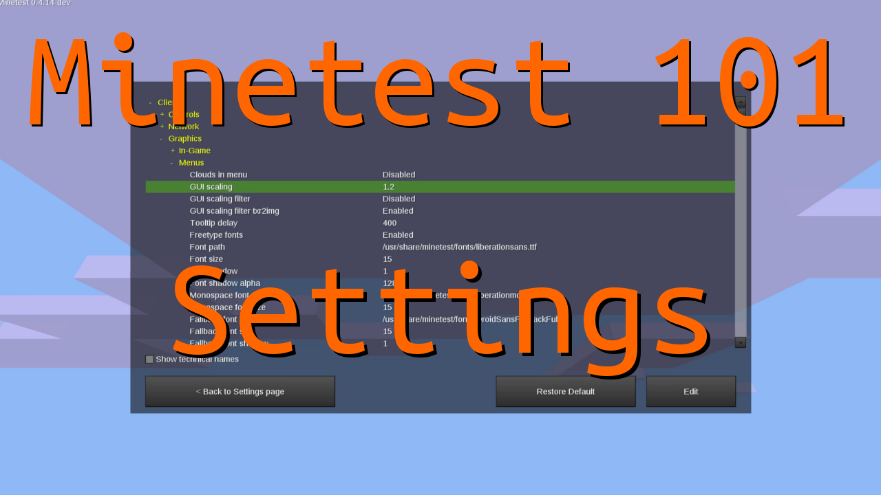 Today we'll be looking at the new settings menu that we have with Minetest 0.4.14. There is a lot of stuff we can change and play around with. At the beginning of the video I do showcase some simple changes you can do to make Minetest run faster on older machines and how to make it look a little more impressive.