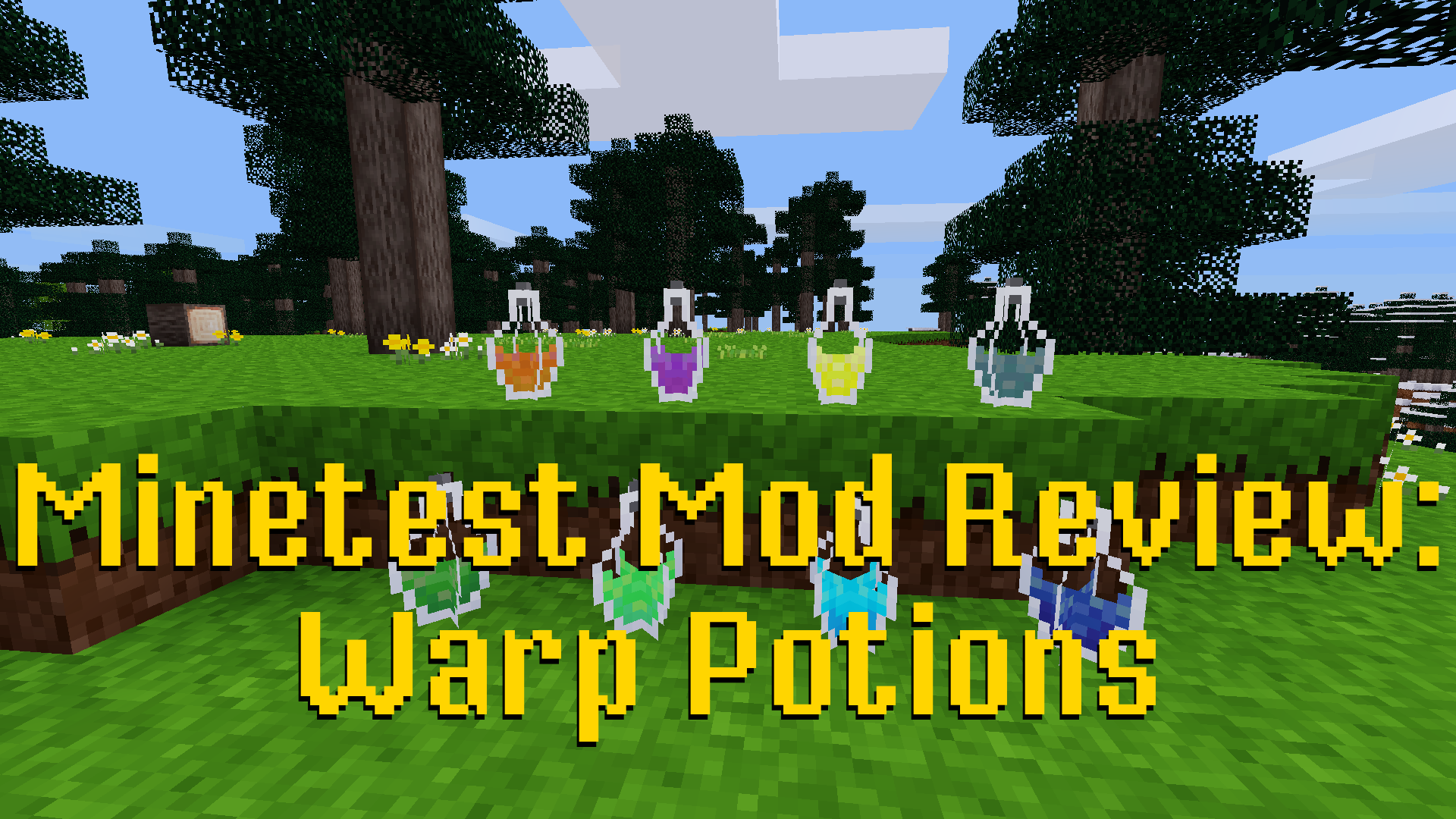 This mod adds eight warp potions which can be placed as decorative items. Smashing a warp potion after it has been placed sets a warp point for that player. There are eight warp points, one for each potion, which can be independently set and are unique to each player. Using a warp potion in the potion inventory will return the player to the warp point for that potion.